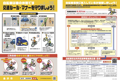保険加入が必要です。金沢市内で自転車を利用される方が義務化の対象です。